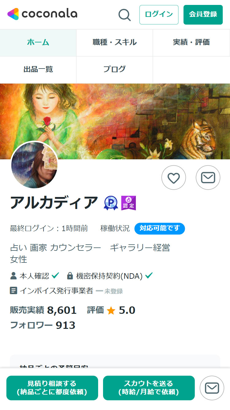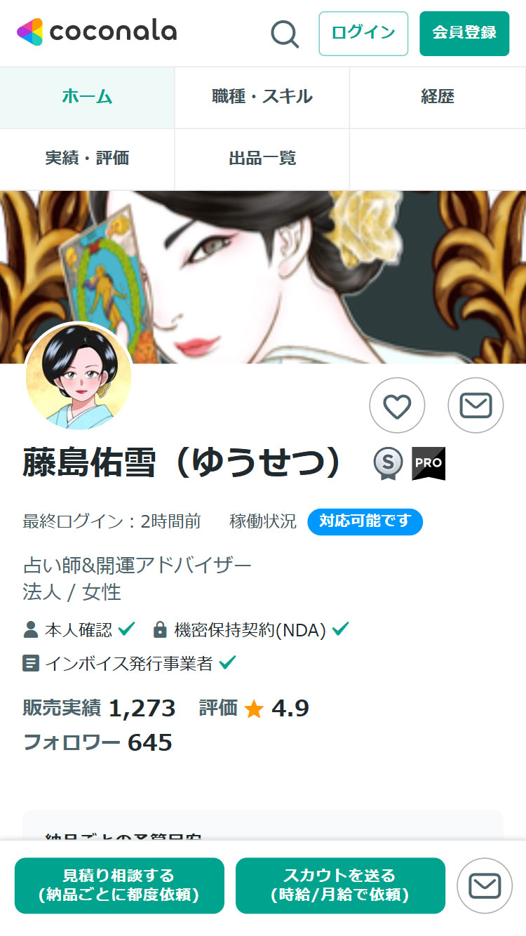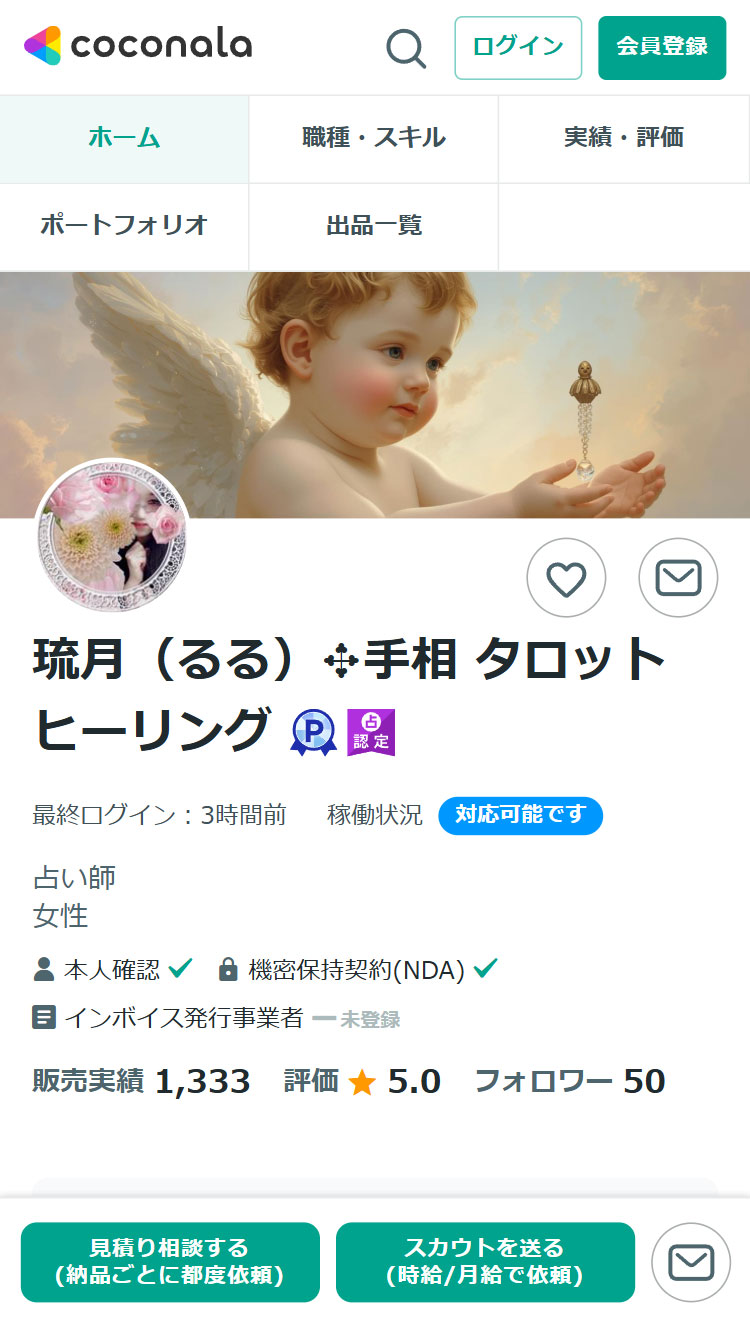 ココナラの電話占いは、スマホやパソコンから占い師に直接電話で相談できるオンラインサービスです。