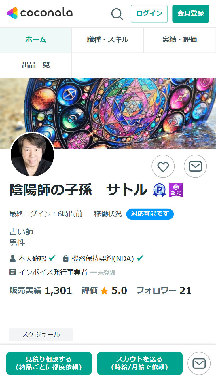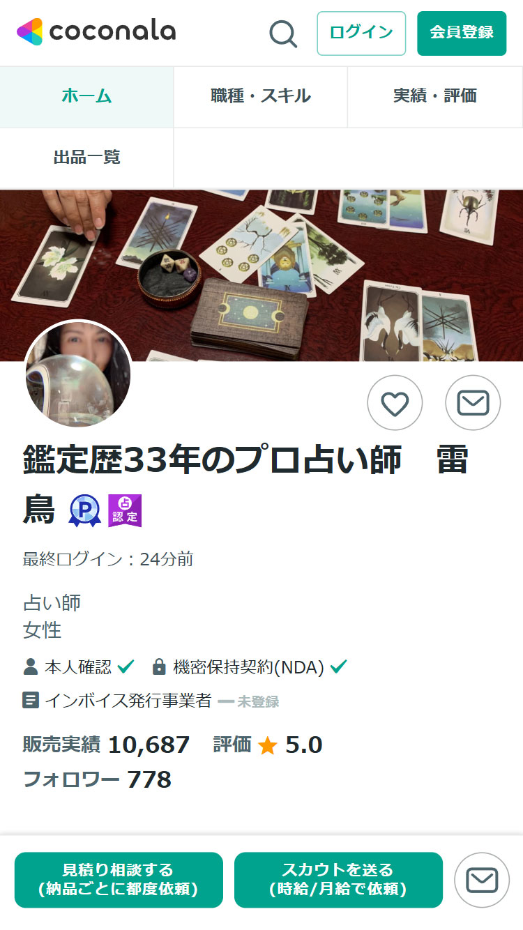 ココナラの電話占いは、スマホやパソコンから占い師に直接電話で相談できるオンラインサービスです。